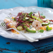 Hass Avocado Salat mit Räucherlachs und Garnelen