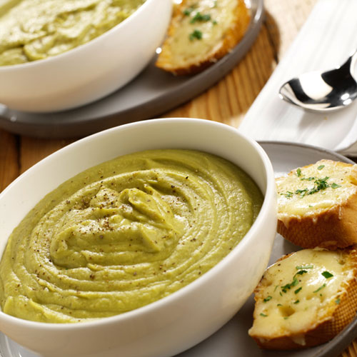 Die Creme mit gehackten Walnüssen, Sesam, Kürbiskernen oder gerösteten Sonnenblumenkernen bestreuen. Für eine Suppe die Zutaten in einem Mixer mit etwa 750 ml Brühe oder Fond pürieren.